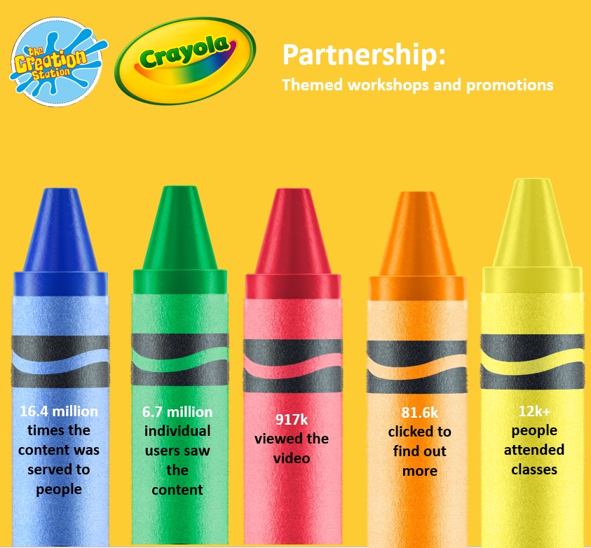 ✓ Community events — creative activities in schools, shopping centres and festivals, alongside brands committed to wellbeing and family connection.